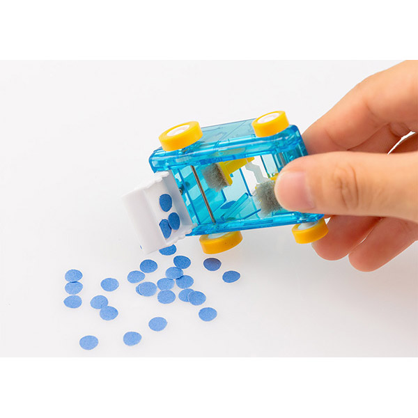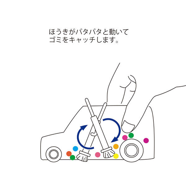 指先でコロコロと軽く転がすだけで車内のほうきがパタパタと動き、消しゴムのカスなどの小さなゴミを集めることができます。