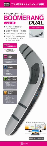 JUD481 USB 3.0 Dual Display対応 ドッキングステーション BOOMERANG(ブーメラン) Dual
