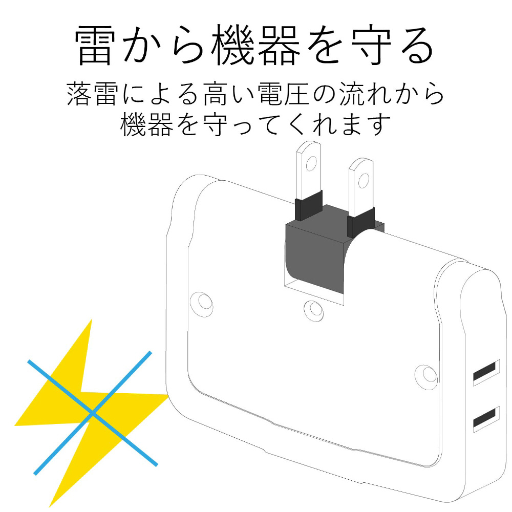 雷ガード付きトリプルタップ(2ピン式・3個口) T-KTR04WH ホワイト