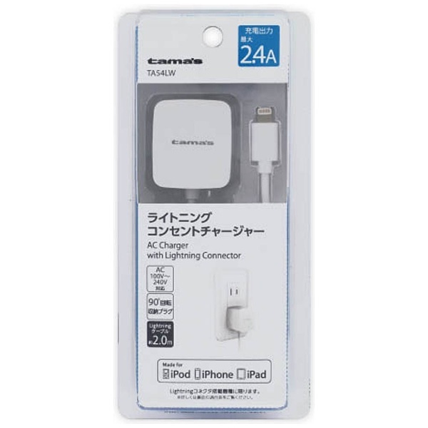 iPhone対応[Lightning] AC充電器 2.4A (2m・ホワイト) MFi認証 TA54LW