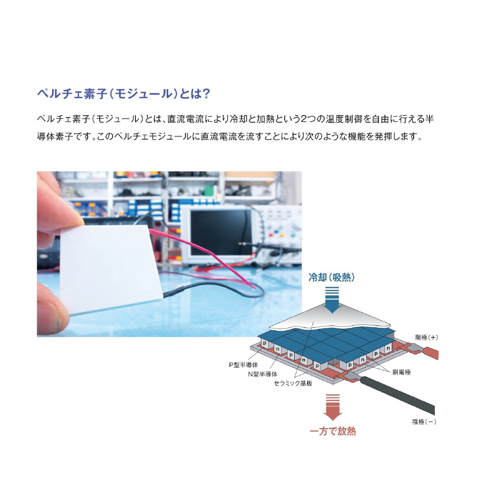 自社生産の長寿命・高性能ペルチェ素子を搭載しているので、長期間の使用も安心です。