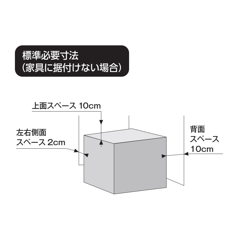 | 据付必要寸法(幅×高さ×奥行)mm | 約390×566×519(家具に据付けない場合) |