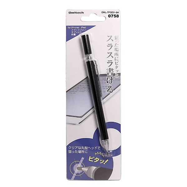 【在庫限り】 〔タッチペン:静電式〕 ディスク型ペン先 静電式タッチペン ブラック OWL-TPSE01-BK