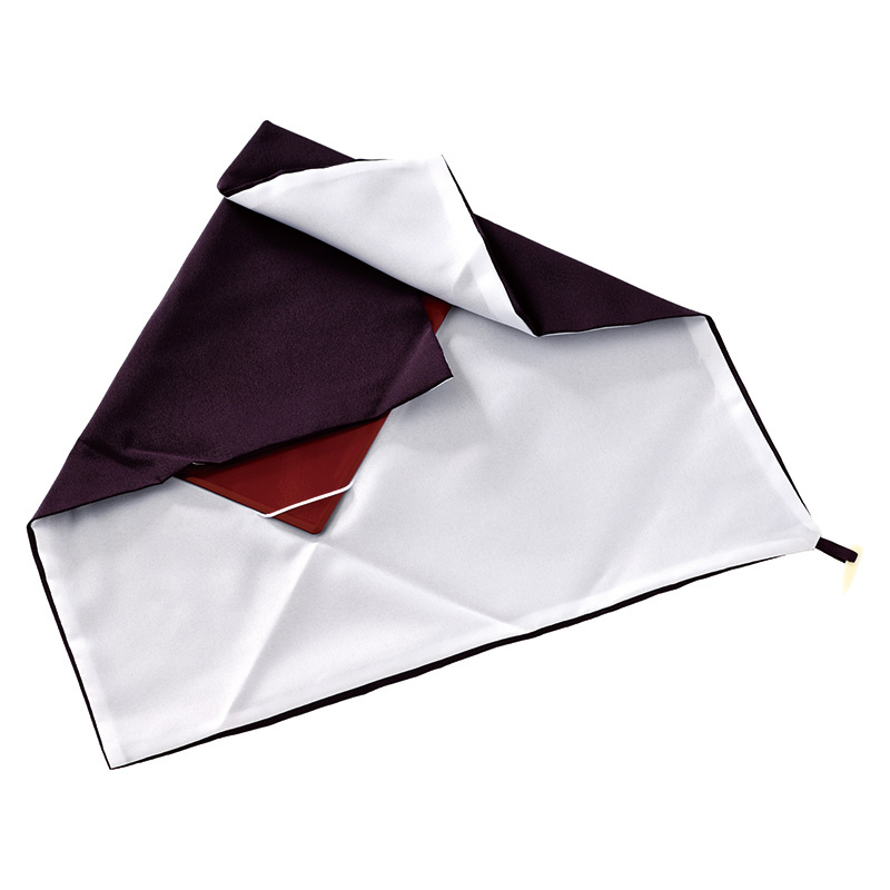 漆盆がついた伝統的な包むタイプの袱紗です。漆盆がついているため型崩れしません。漆盆は片面が赤(祝事用)、片面が緑(弔事用)となっております。紫色は慶弔両用・男女兼用でご利用いただけます。保存にも便利な化粧箱入。