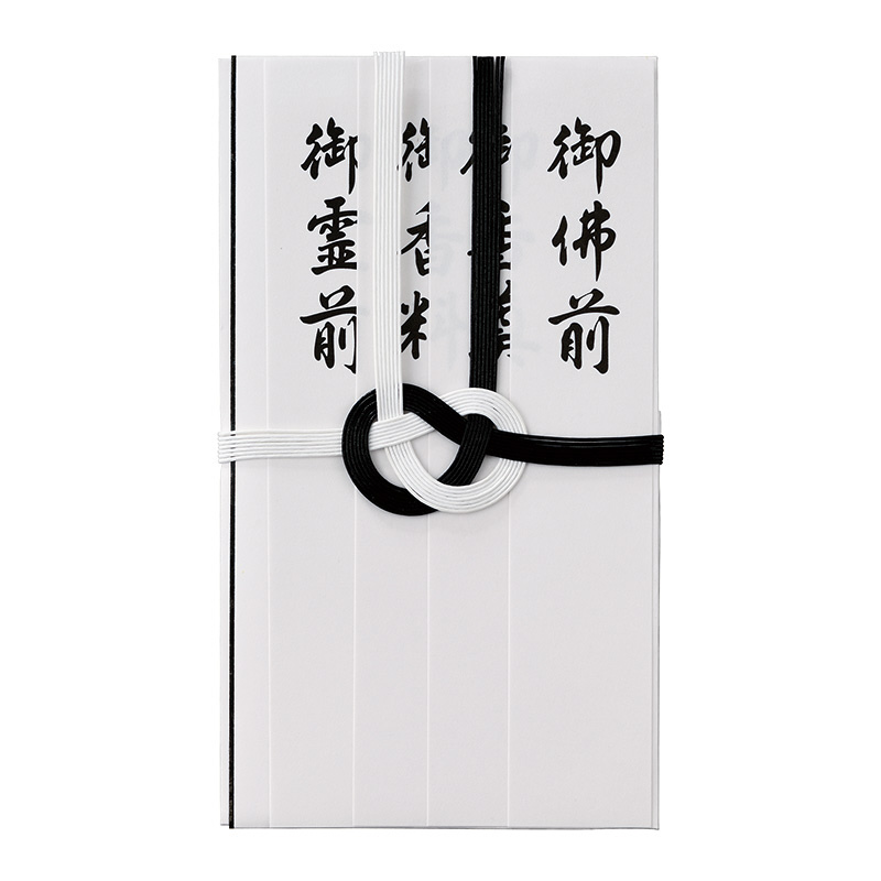 サイズ:105×185mm。「御霊前」、「御佛前」、「御香料」、「御香奠」の短冊4枚入。短冊を使用せず、直接金封本体へ書くこともできます。中袋付。1枚入。