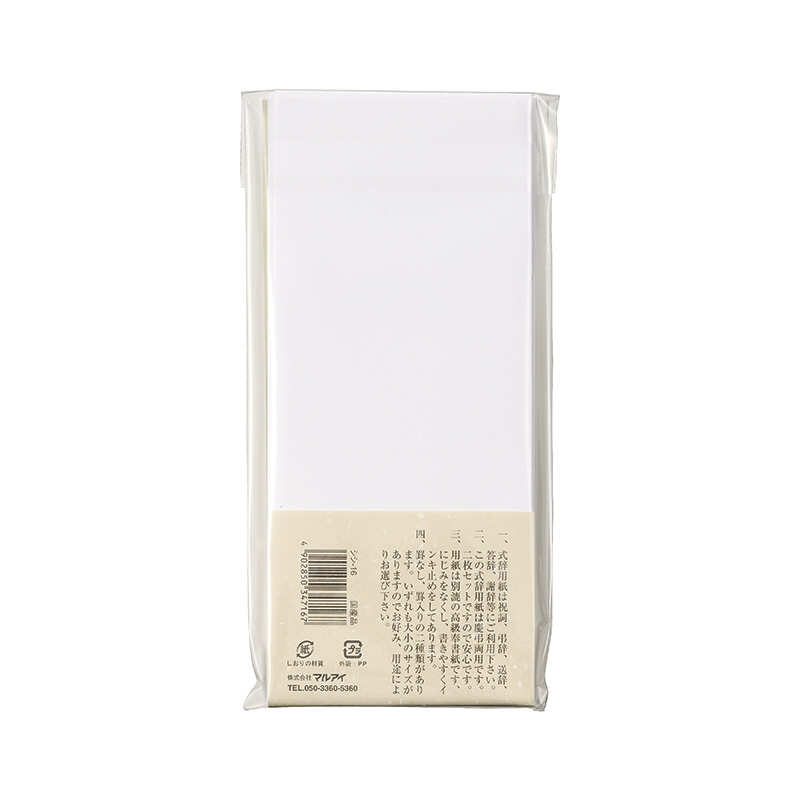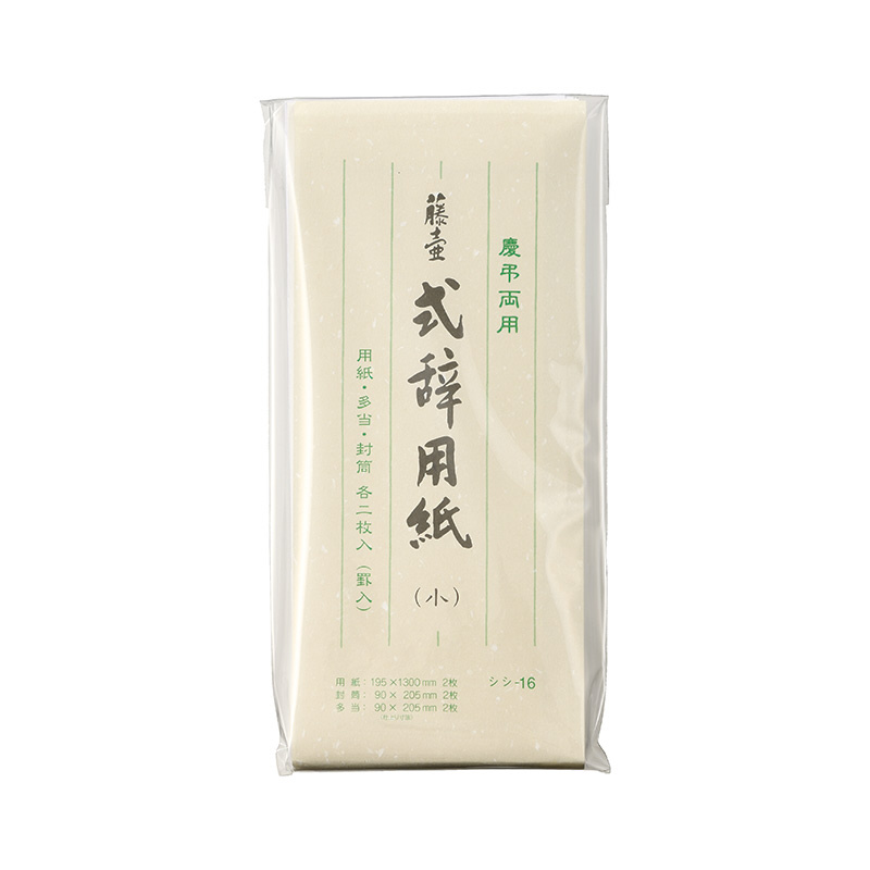セット内容:用紙(195×1,300mm)2枚、多当2枚(奉書)、封筒(奉書)2枚。