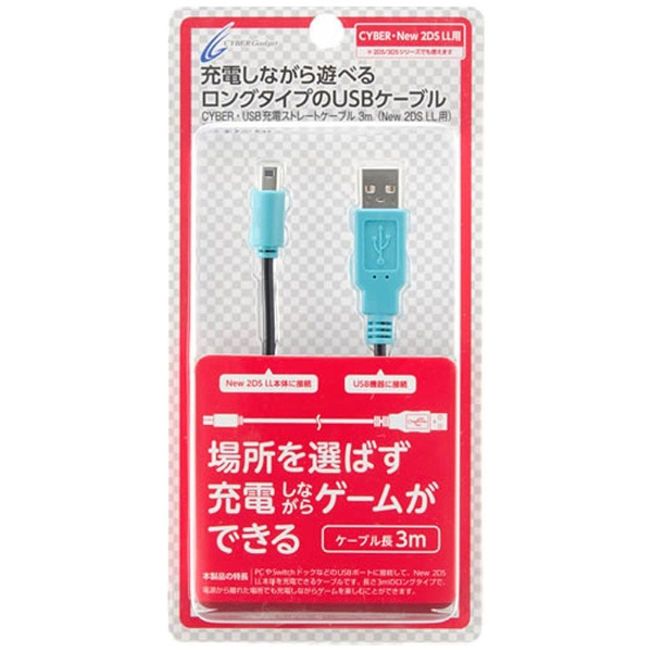 【在庫限り】 CYBER・USB充電ストレートケーブル3m ブラック×ブルー [New2DS LL] [CY-N2DLSTC3-BB]