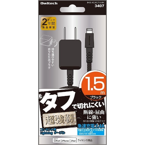 iPad/iPhone/iPod対応[Lightning] AC充電器 2.4A (1.5m・ブラック) BKS-ACJKLT15-BK MFi認証 【ビックカメラグループオリジナル】