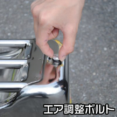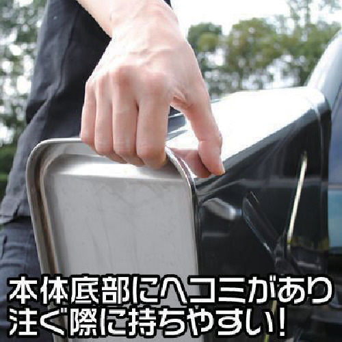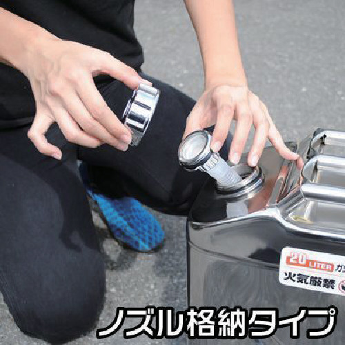 ・高さ(mm): 470ガソリン、軽油、灯油を入れて持ち運べるガソリン携行缶です。錆びにくいステンレス採用で屋外での保管や、マリンユーザーに最適です。本体底部に凹みがあり、注ぐ際に持ちやすい作りになっております。ノズルを本体内部に収納でき、ノズルの紛失、破損等を防げます。