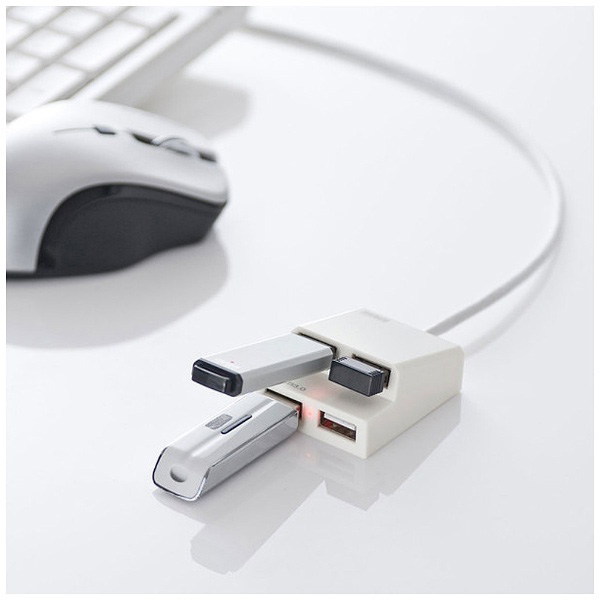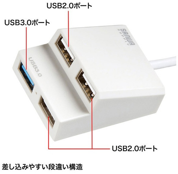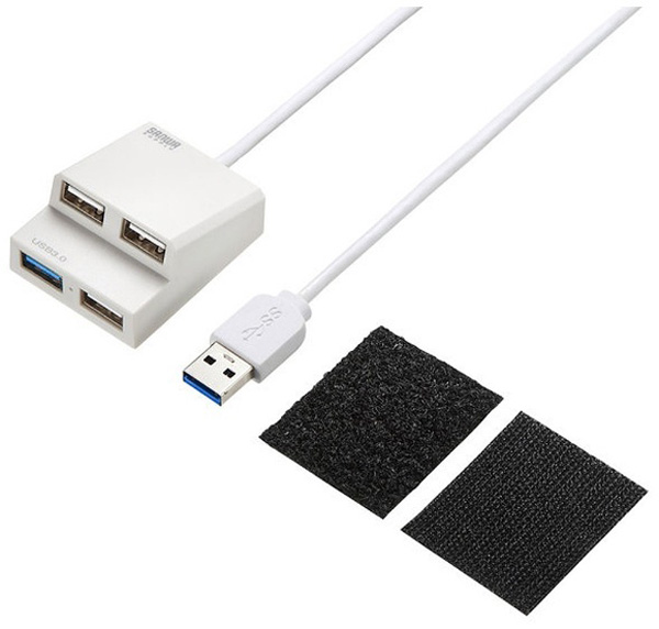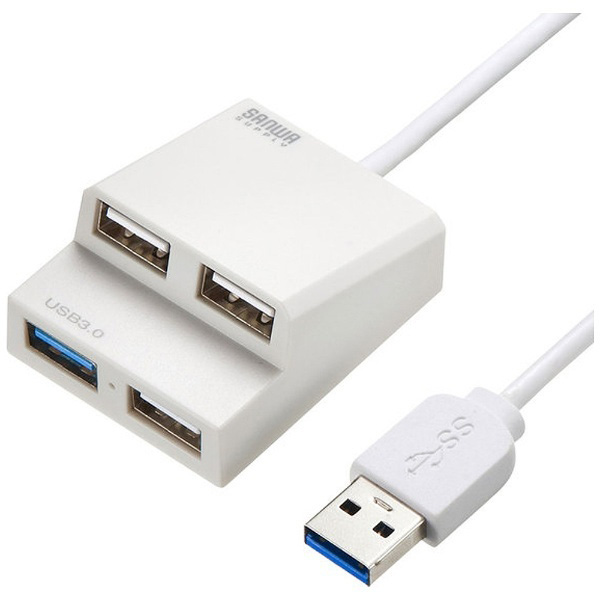 USB3.0×1ポート、USB2.0×3ポートのコンボタイプUSBハブ。ホワイト。