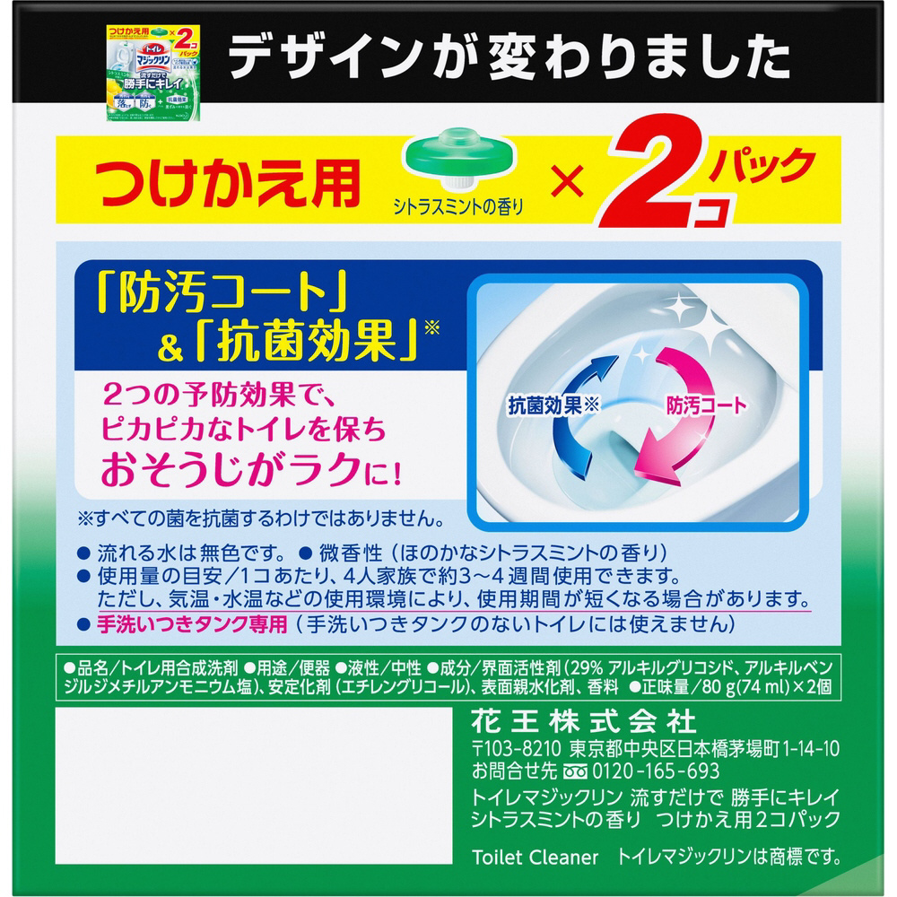 | 商品名 | トイレマジックリン 流すだけで勝手にキレイ シトラスミントの香り つけかえ用 80g×2コ |