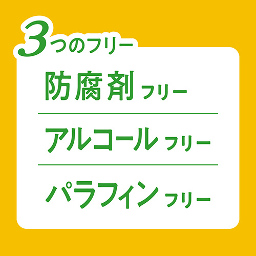 | 仕様3 | 3つのフリー(防腐剤フリー、アルコールフリー、パラフィンフリー) / 赤ちゃんと一緒に入浴する時も使えます |