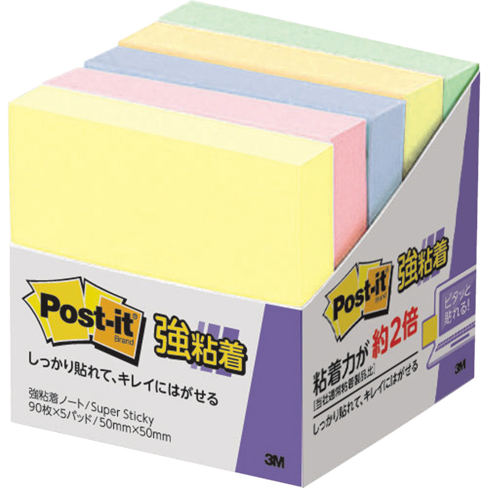 ポスト・イット 強粘着 50X50mm 90枚X5パッド 4色混色 6505SSAP