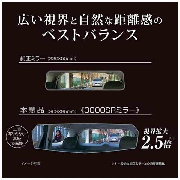 ワイドな視界と自然な距離感を確保する曲率半径(3000SR)を採用。