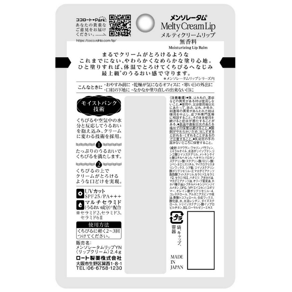 | 商品名 | メンソレータムメルティクリームリップ無香料 |