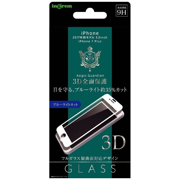 iPhone 8 Plus ガラスフィルム 3D 9H 全面保護 ブルーライトカット ホワイト INP7SPRFGMW