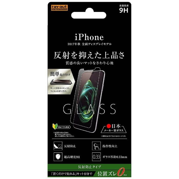 iPhone X用 液晶保護ガラスフィルム 9H 反射防止 貼付けキット付 RT-P16FG/HK 【864】