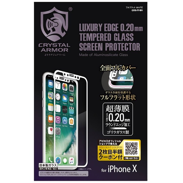 【在庫限り】 iPhone X用 フルフラット強化ガラス 0.2mm ホワイト GI08FFWH