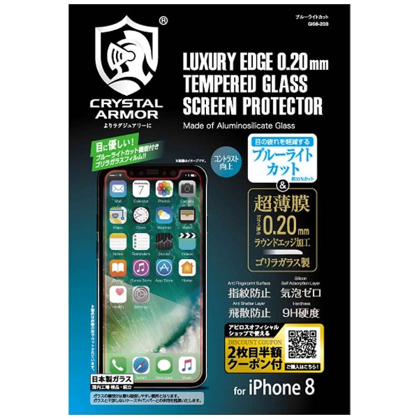 【在庫限り】 iPhone X用 ブルーライトカット強化ガラス 0.2mm GI0820B