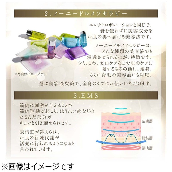 高度な機能はそのままに、よりカーブの多い女性の肌にフィットして使いやすいU字型ヘッドと金イオンの融合で、細かい部分まで年齢ケアを行うことが可能になったトータル美顔器です。