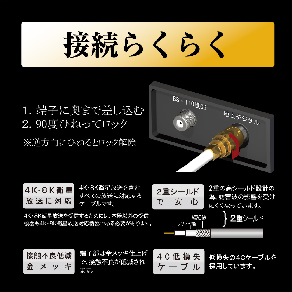 4K8K対応らくらくコネクタケーブル 1m