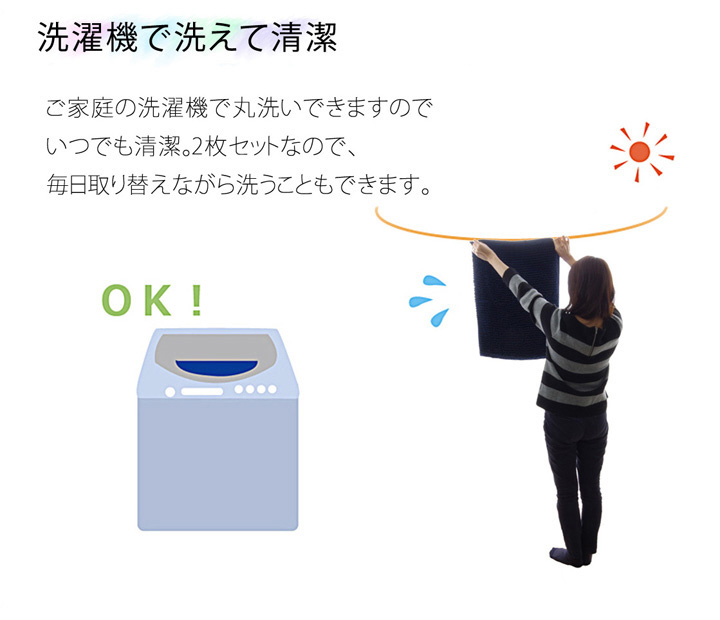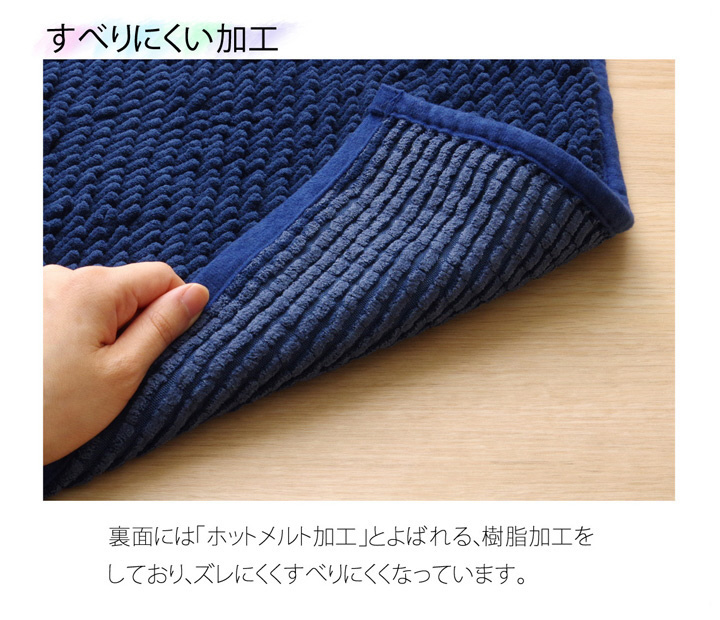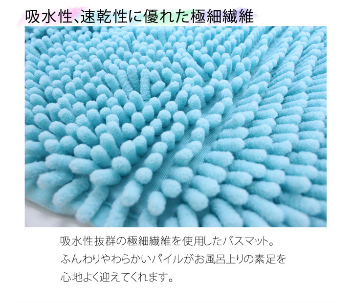 シンプルな無地の吸水速乾に優れたバスマットです。清潔にお使い頂けるように、もちろん洗濯機での丸洗いにも対応(ネット使用)。