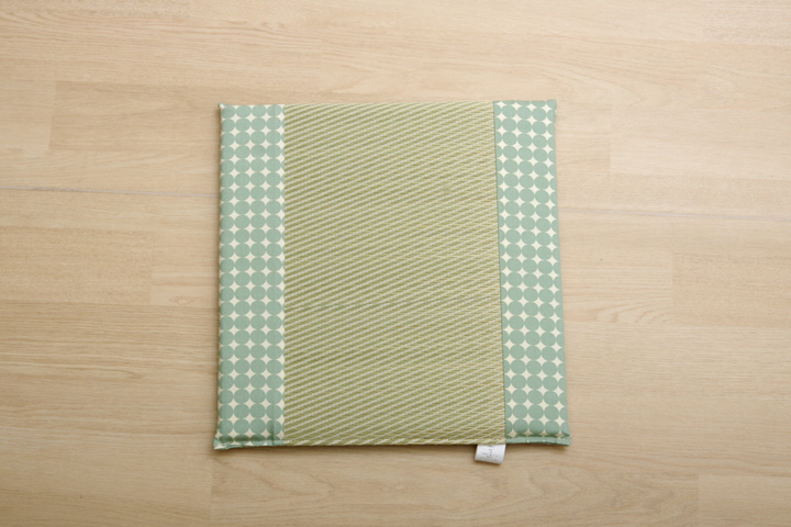 表はイ草とポリプロピレン、裏は綿生地のリバーシブルタイプのカークッションです。