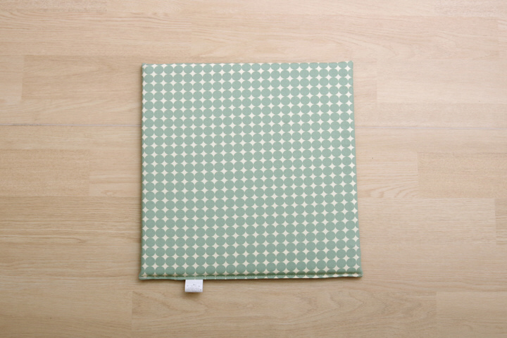 表はイ草とポリプロピレン、裏は綿生地のリバーシブルタイプのカークッションです。表地にはイ草を使用しています。い草には空気の自然浄化(消臭)作用、湿度の調節作用などがあり、長時間座った際のムレを軽減します。