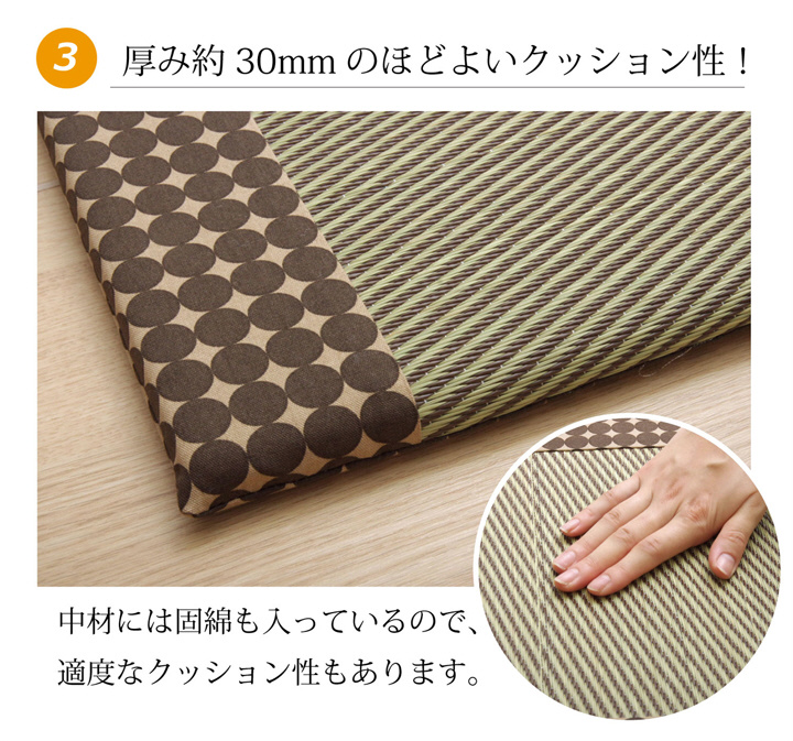 い草には空気の自然浄化(消臭)作用、湿度の調節作用などがあり、長時間座った際のムレを軽減します。