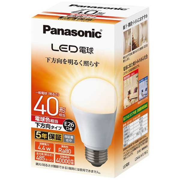 | 商品名 | LDA4L-H/E/W/2 LED電球 ホワイト [E26 /電球色 /1個 /40W相当 /一般電球形 /下方向タイプ] |