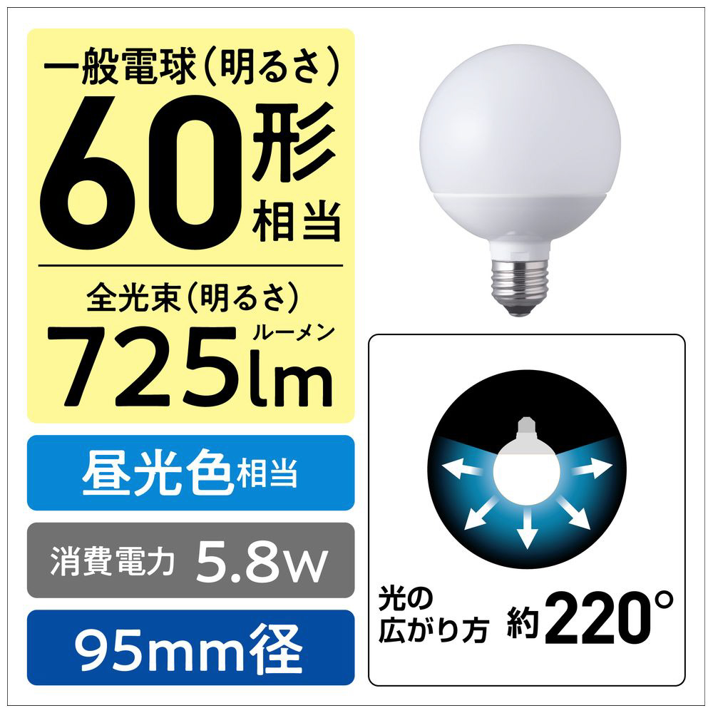 LDG6D-G/95/W LED電球 ホワイト [E26 /昼光色 /1個 /60W相当 /ボール電球形 /広配光タイプ]