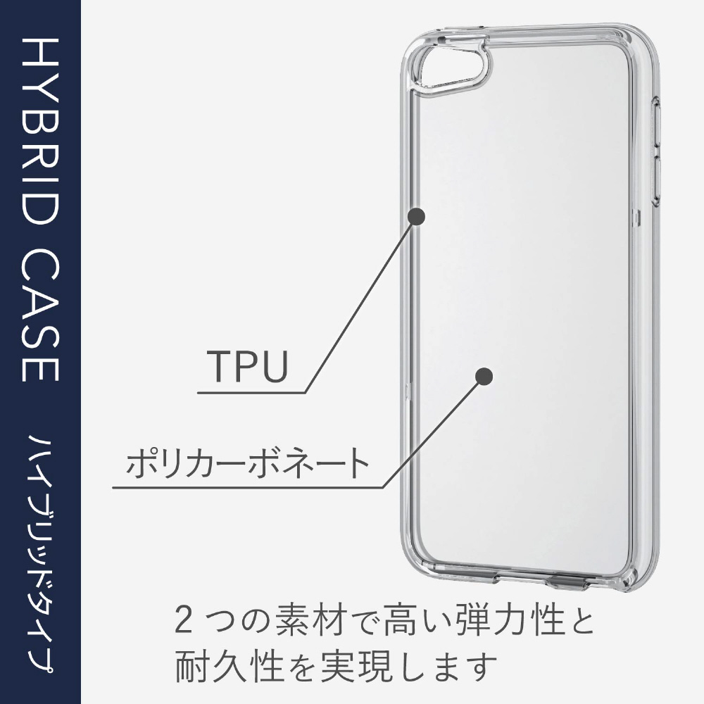 透明度が高く弾力性のあるTPUと傷に強い特殊なポリカーボネートの2つの素材を使用したiPod touch用ハイブリッドケースです。