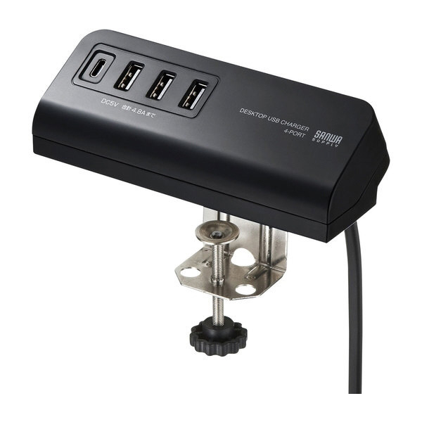 | 商品名 | クランプ式USB充電器(TypeC1ポート+USB3ポート・ブラック) ACA-IP51BK |