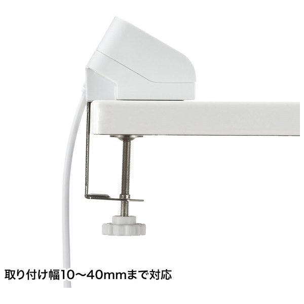 ■デスクにクランプで取り付けることができるUSB充電器です。※取付対応デスク厚: 天板の厚みが10〜40mmまでのデスクに対応。