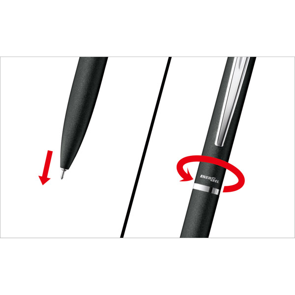 ノック式エナージェルシリーズの5つのボール径が替芯として使用可能です。(本体の内蔵芯は0.5mmです)