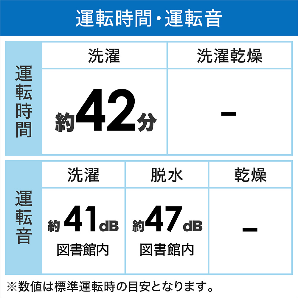 ■運転音(洗い/脱水): 約41dB/約47dB