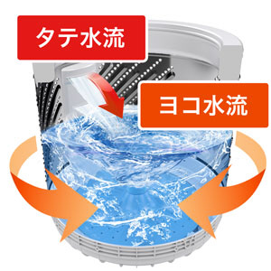 ・「ヨコ水流」に「タテ水流」を加えることで、洗濯物を踊るように動かして頑固な汚れを落とします。