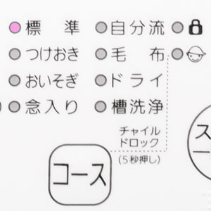 | コース | 標準/つけおき/おいそぎ/念入り/自分流/毛布/ドライ/風乾燥のみ/洗濯コース+風乾燥/槽洗浄 |