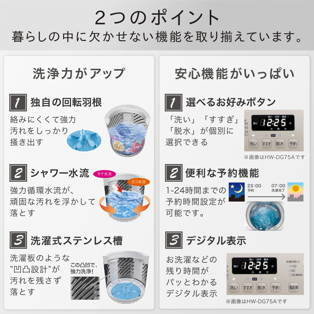 | 商品名 | 全自動洗濯機 (洗濯7.5kg) HW-G75A ホワイト/ホワイト |