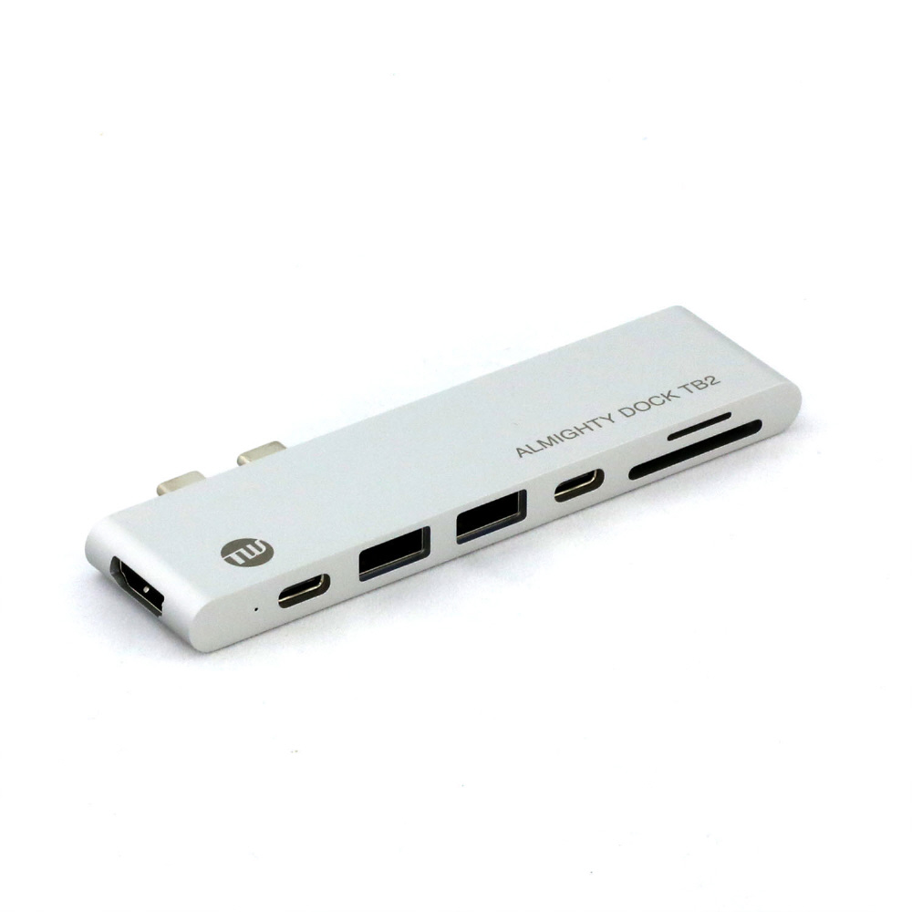 【MacBook Pro(2017/2016)用】[USB-Cx2 オス→メス SDカードスロット / micro SDカードスロット / HDMIポート / USB-Ax2 / USB-C / Thunderbolt 3]5K対応 変換アダプタ USB PD対応 シルバー TUN-OT-000039