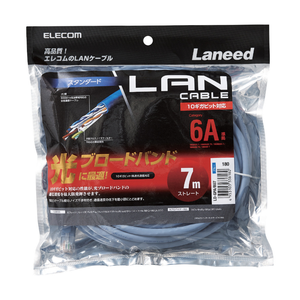 | 商品名 | CAT6A LANケーブル スタンダード(7m・ブルー) LD-GPA/BU7 |