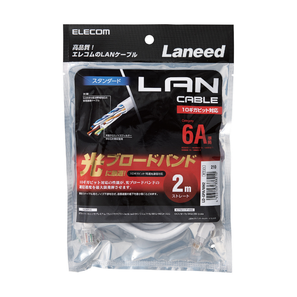 | 商品名 | CAT6A LANケーブル スタンダード(2m・ホワイト) LD-GPA/WH2 |