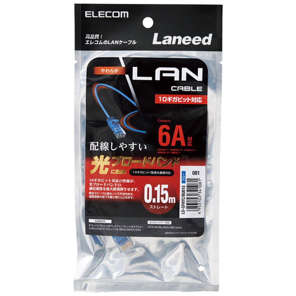 | 商品名 | CAT6A LANケーブル やわらか(0.15m・ブルー) LD-GPAYC/BU015 【864】 |