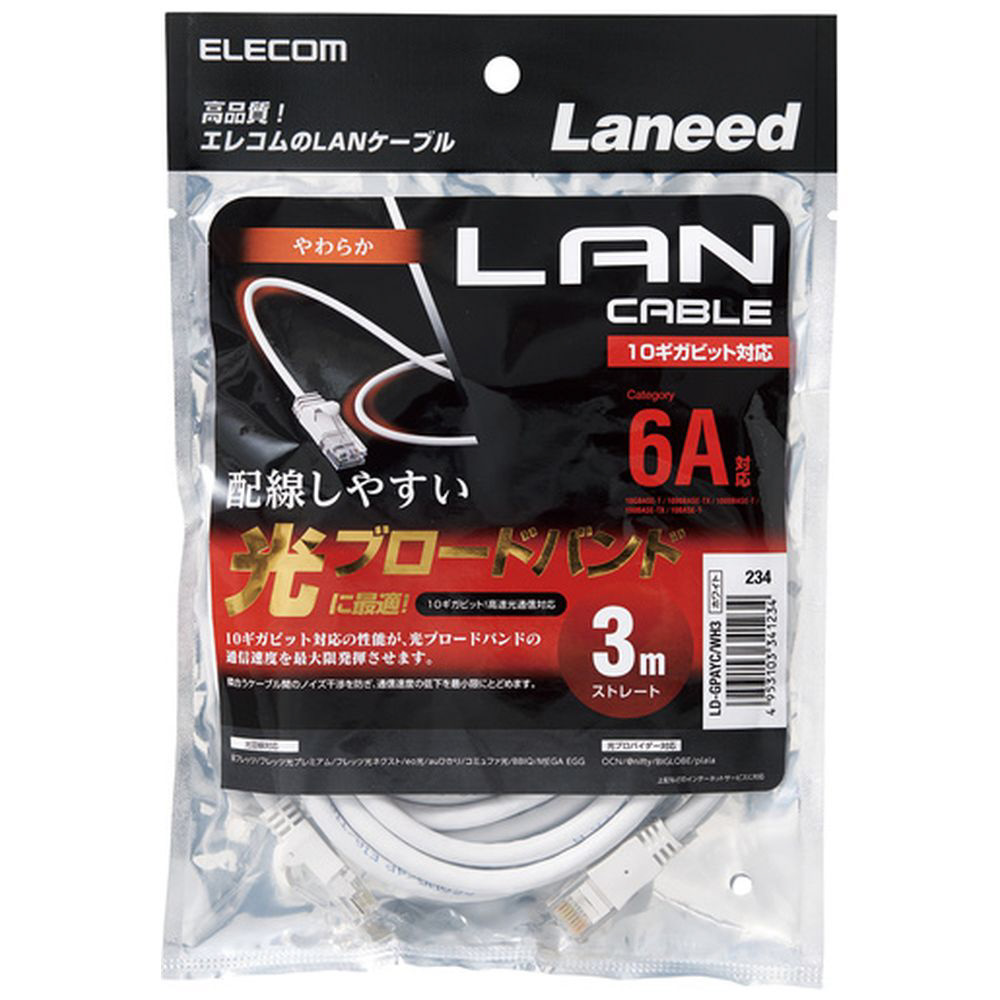 | 商品名 | CAT6A LANケーブル やわらか(3m・ホワイト) LD-GPAYC/WH3 |