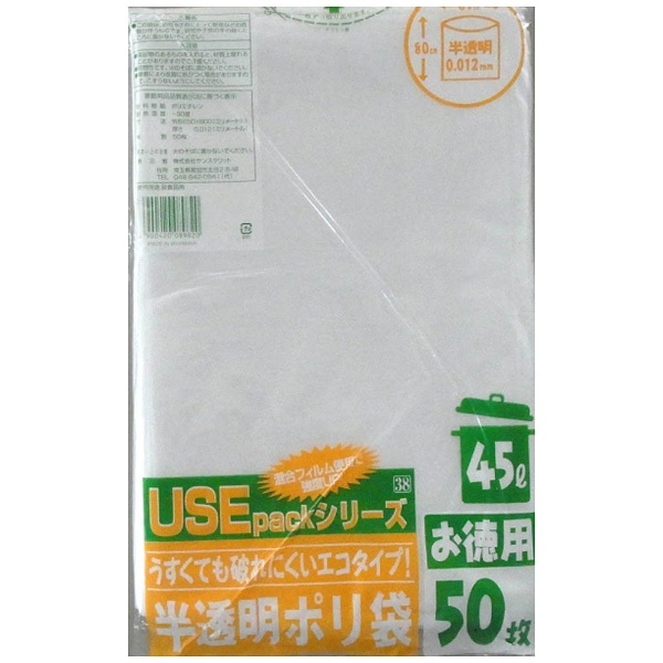 | 商品名 | 半透明ポリ袋 超薄手 45L 50P USE38 |