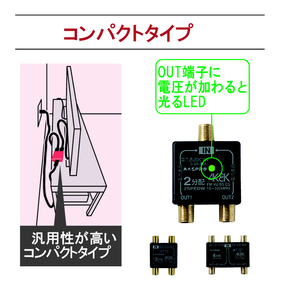 4K・8K衛星放送で使用される予定の3224MHzまでの周波数に対応した分配器です。