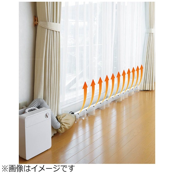 ・水分が集中するカーテンの下部に、布団乾燥機につないだ「カラッと!乾カシーナ」の温風を当てることで、結露で湿ったカーテンを効率よく乾燥させることが出来ます。