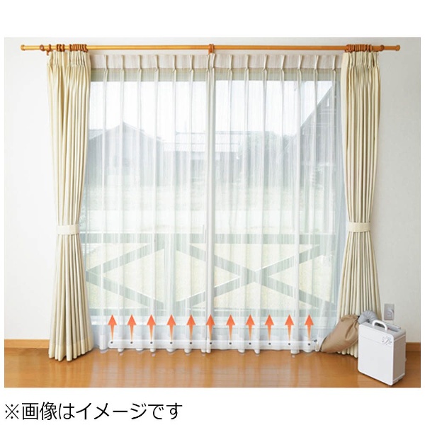 ・本体を組み立て、吹き出し口がカーテン側を向くように、カーテンと窓の間に設置します。