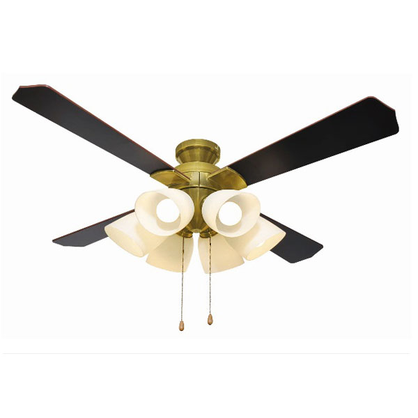 プルスイッチ式のクラシックな6灯シーリングファン。