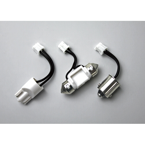ラゲッジランプや灯室内のスペースが狭いルームランプに最適なサイズで、4つの口金に対応することで